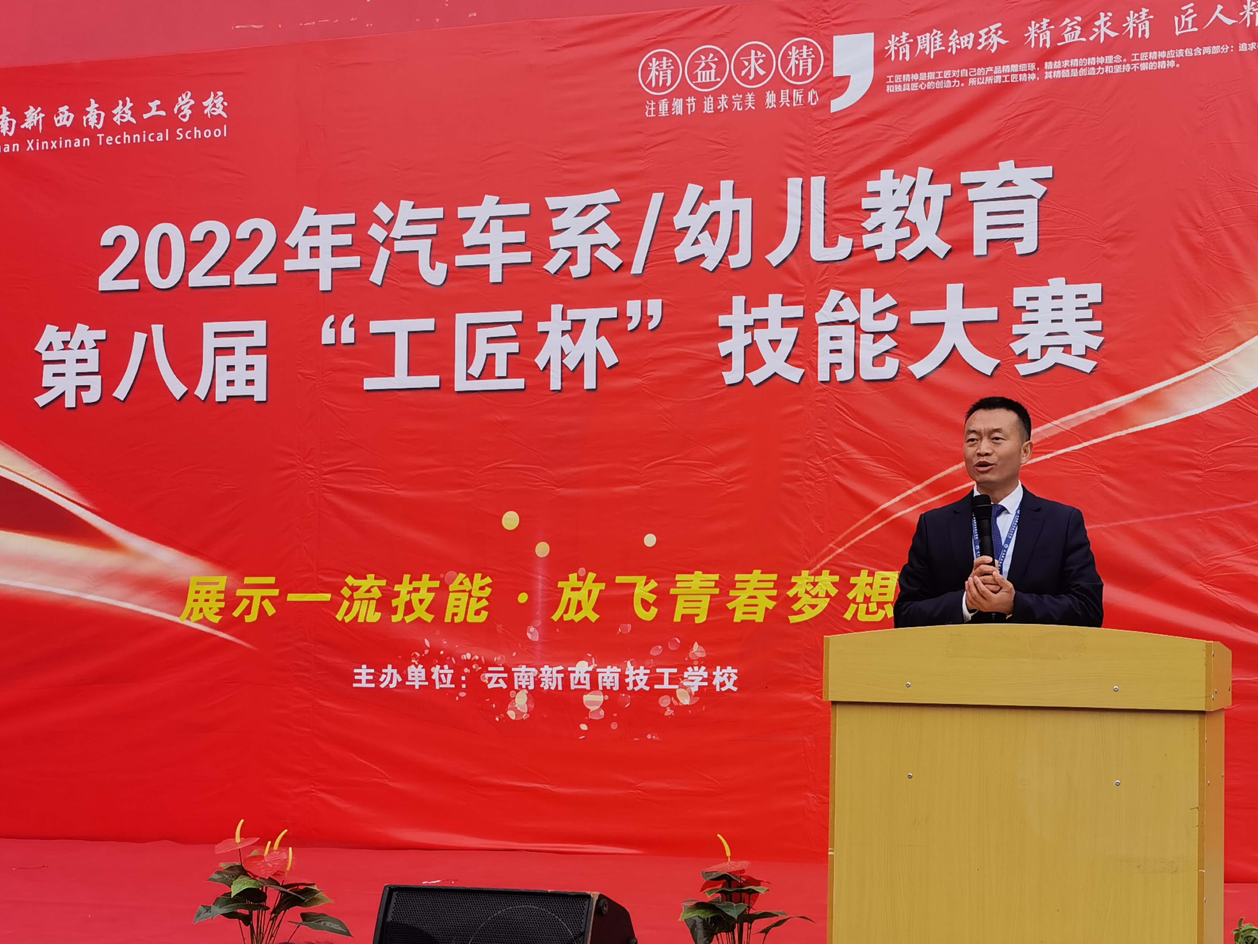 云南新西南技工学校常务副校长姜超,就业办主任李永强,校办主任马建兴,厨师系主任刘君,学管部主任邓自山,汽车系副主任陈斌出席了开幕式。