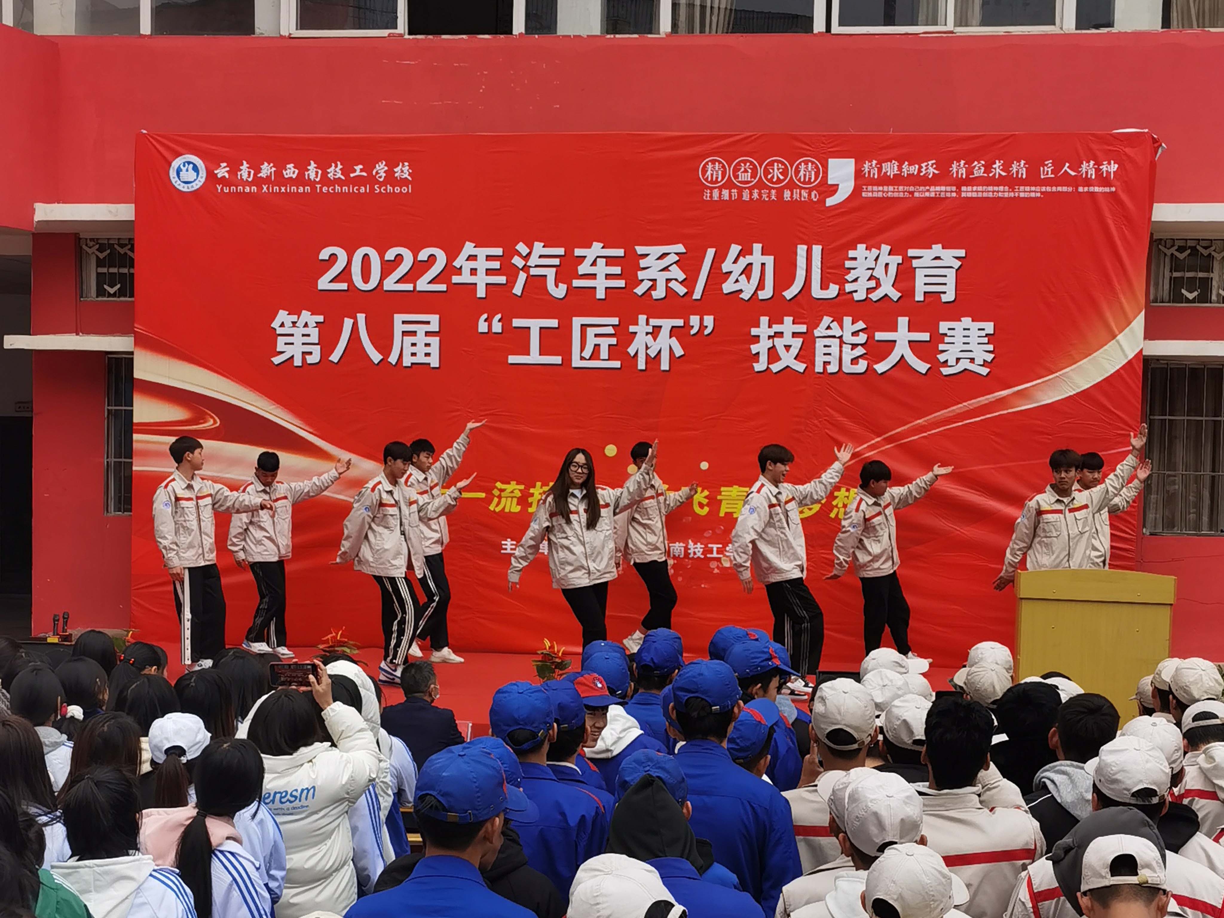 云南新西南技工学校2022年汽车系/幼儿教育第八届“工匠杯”技能大赛于2022年12月5日正式开启,来自云南新西南技工学校汽修系/幼儿教育系的全体同学参加了开幕式。
