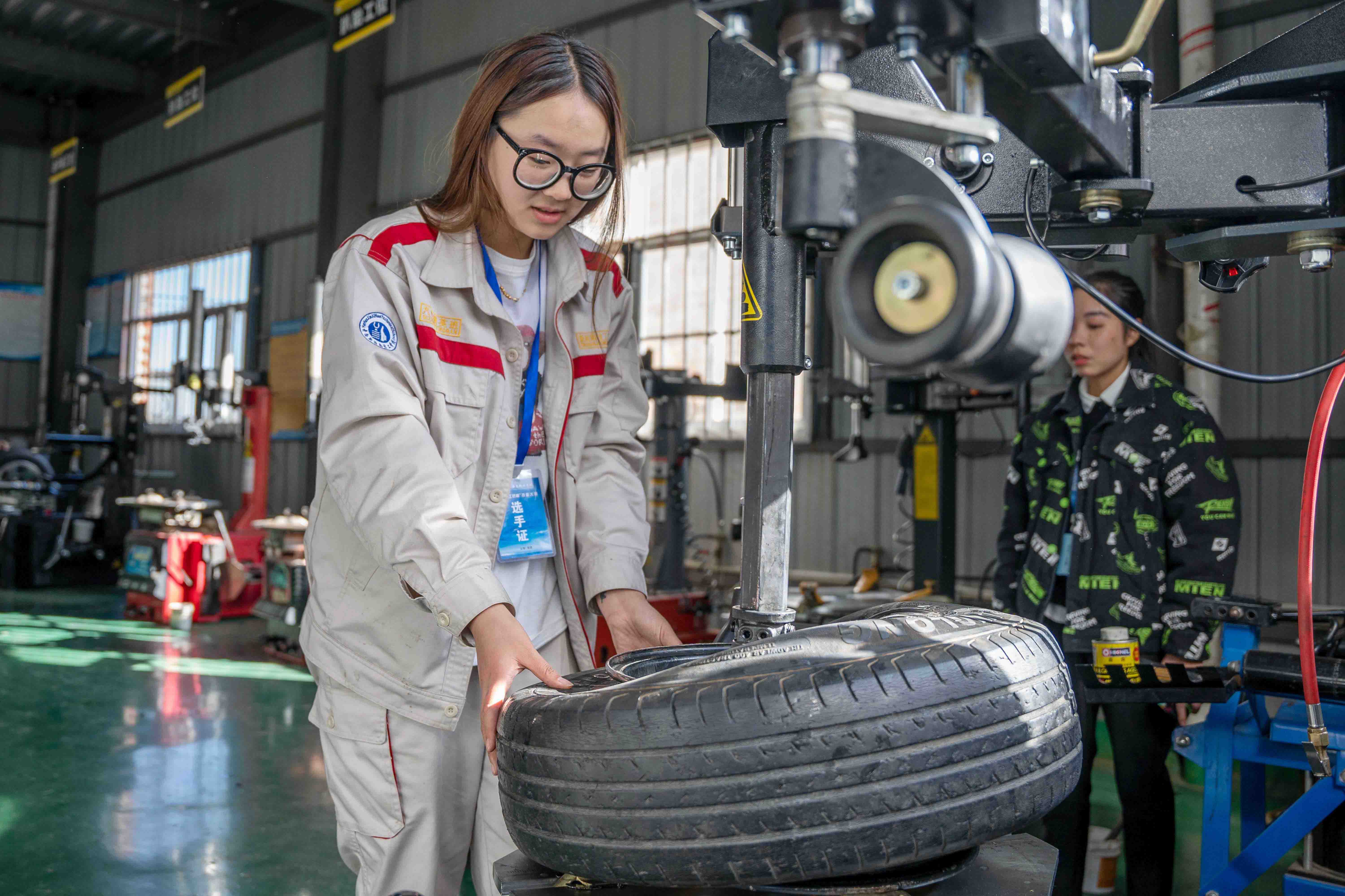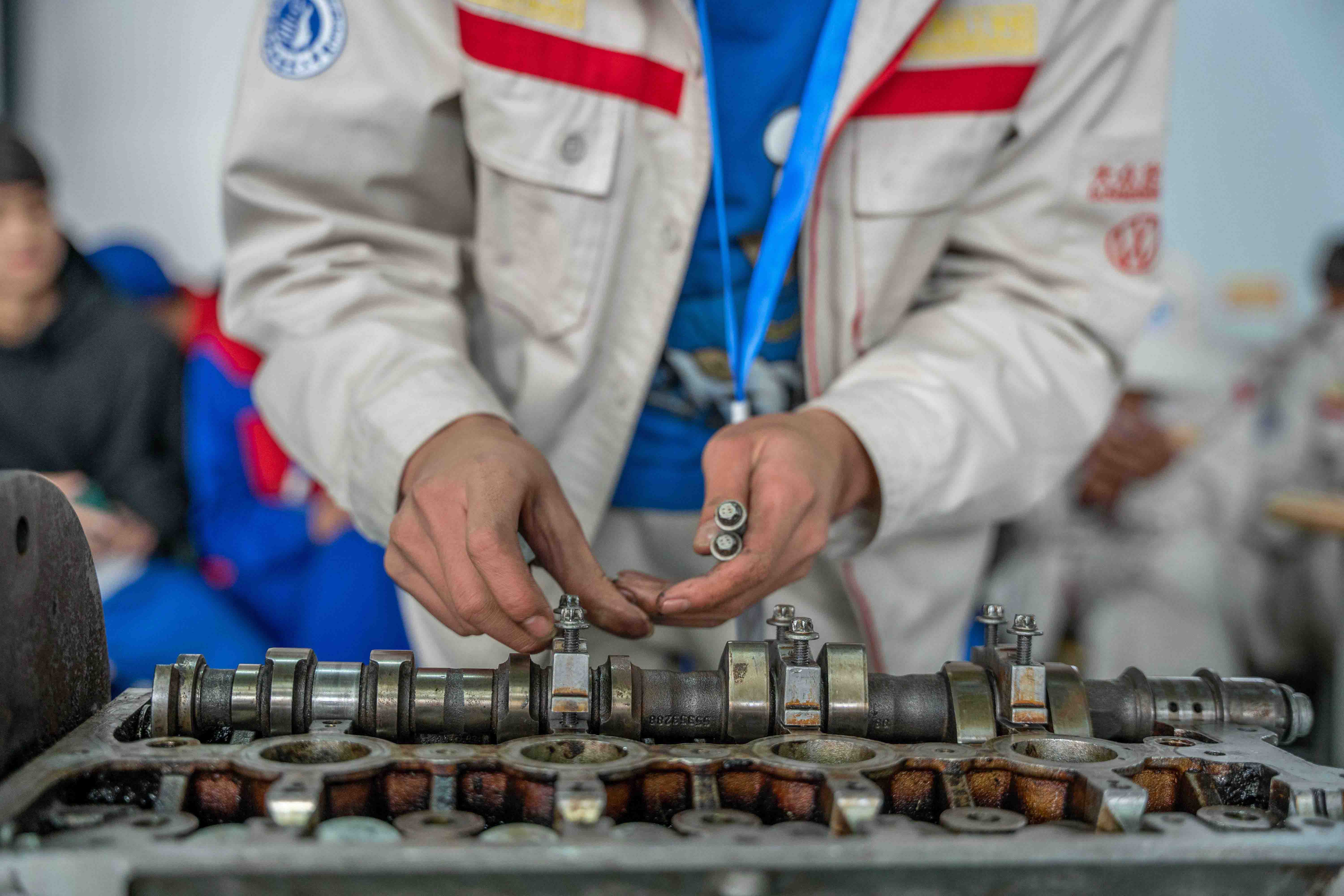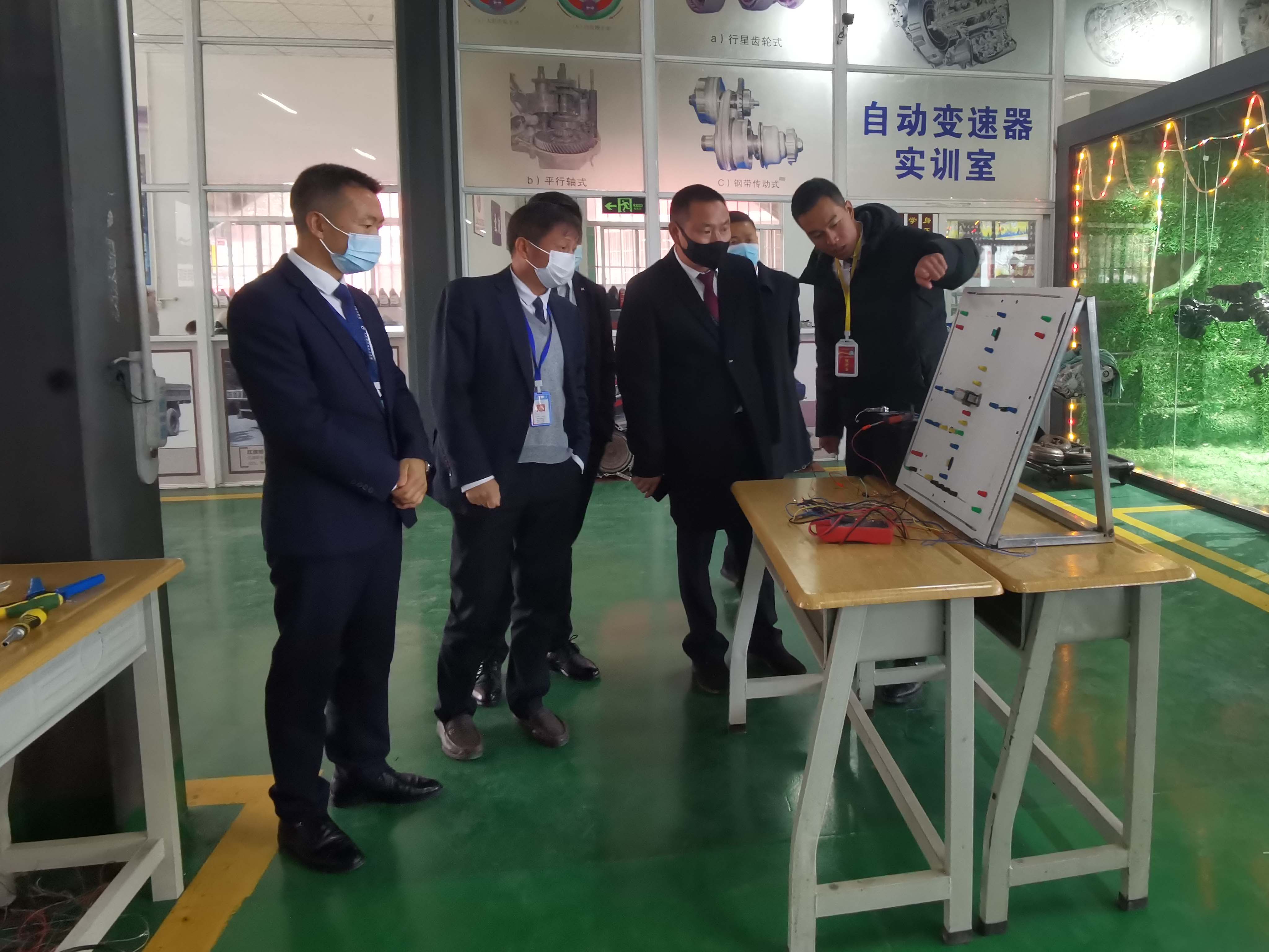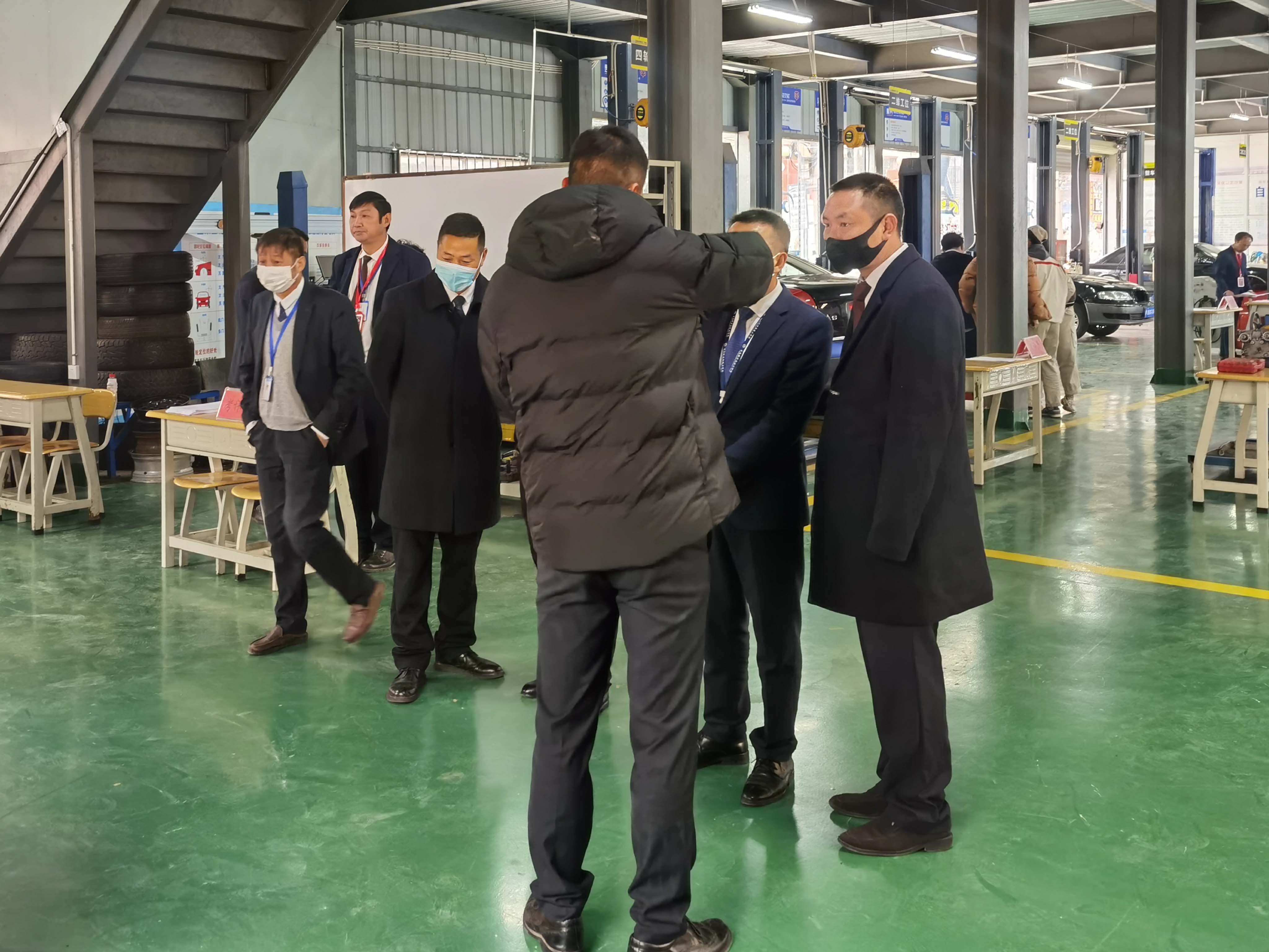 各位校领导在汽修系主任的带领下参观比赛现场。