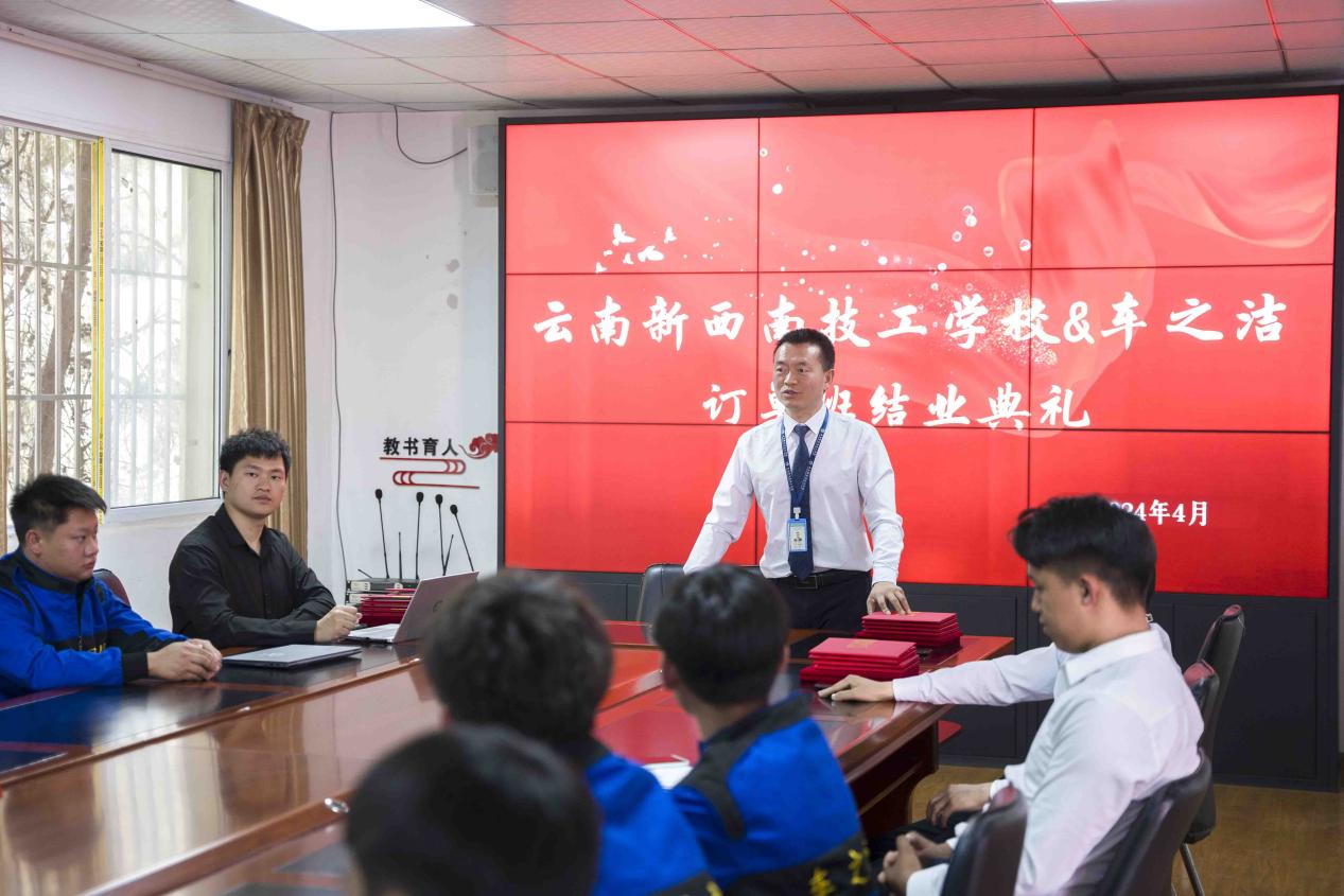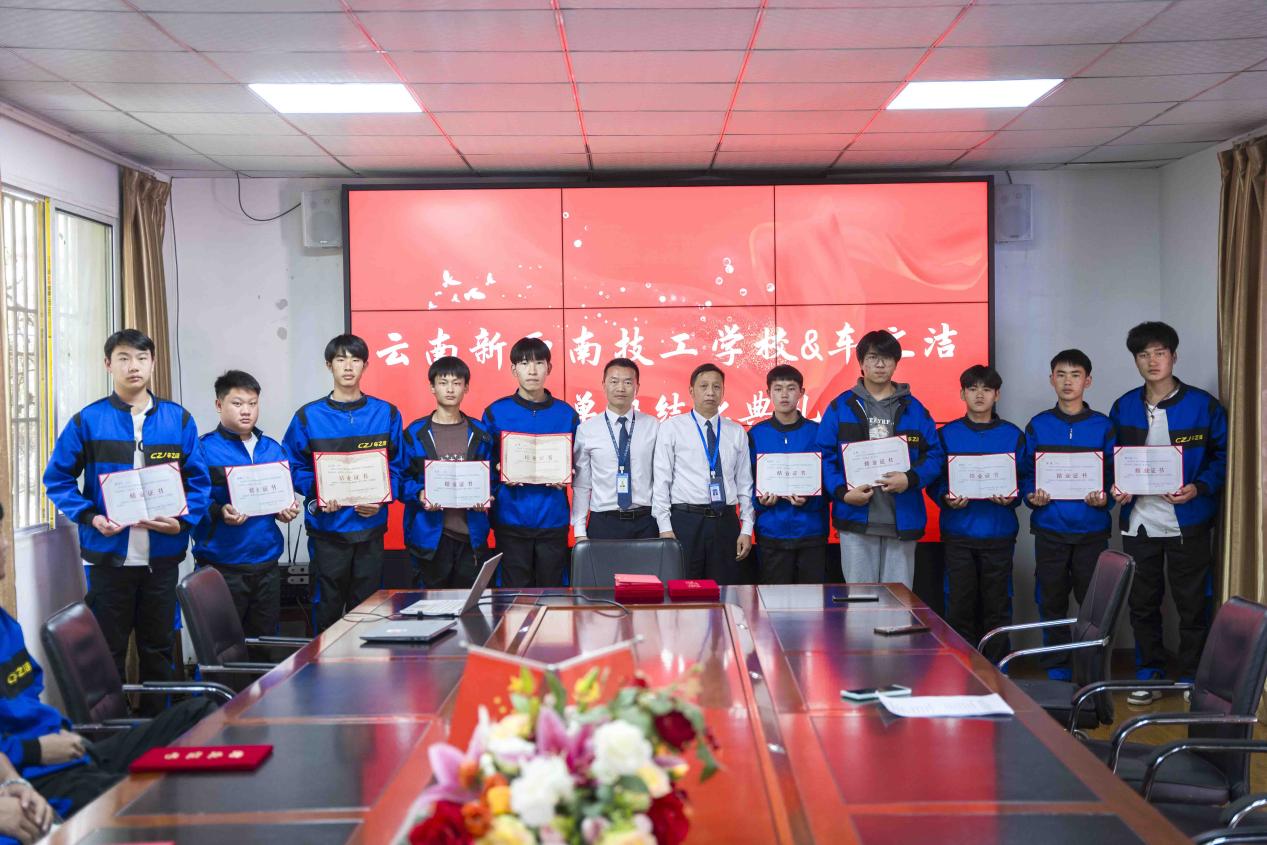 云南新西南技工学校与车之洁企业联合举办的订单班结业典礼在学校