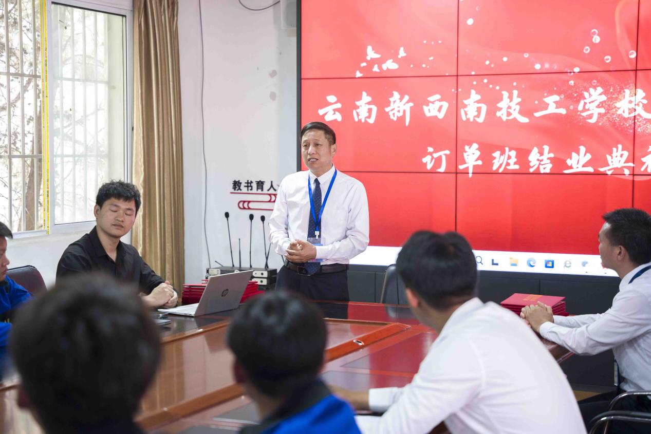 首先,由云南新西南技工学校副校长姜超致辞。姜副校长在致辞中表示,此次校企合作订单班的成功举办,是学校与企业共同努力的结果,充分体现了校企合作在人才培养中的重要作用。他强调,学校将继续加强与企业的合作,不断提升教学质量,为社会培养更多高素质、高技能的专业人才。