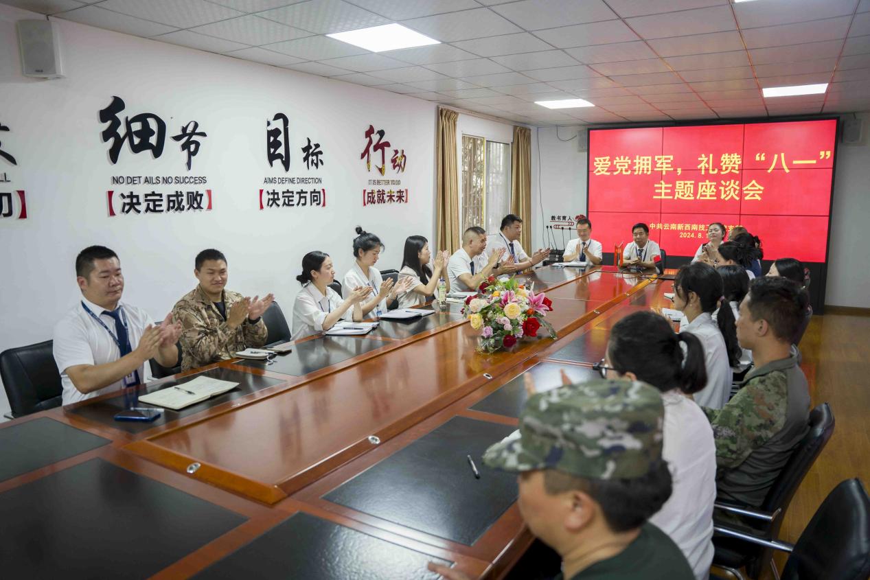 中国人民解放军建军97周年之际,云南新西南技工学校党支部组织全校党员、退伍军人隆重举行“爱党拥军,礼赞八一”主题座谈会。