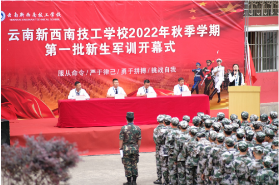 2022年7月18日,2022级云南新西南技工学校的学子迎来了开学以来的第一课——军训。上午9点第一批新生军训开幕仪式在教学楼前操场举行,尽管烈日当头,但同学们都凭着毅力坚持了下来,这充分展现了新西南技工学校新生的顽强拼搏精神。